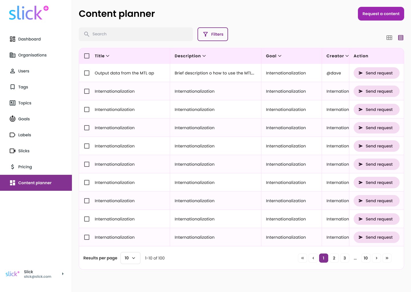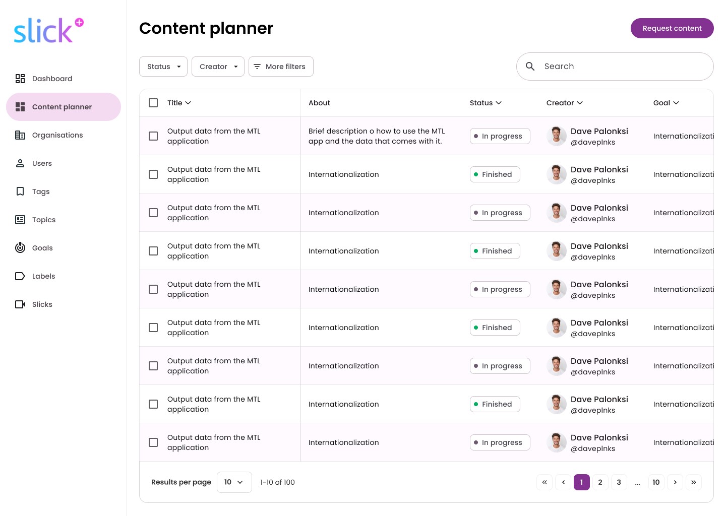 Content Planner centralizing requests, goals, and publishing logic.