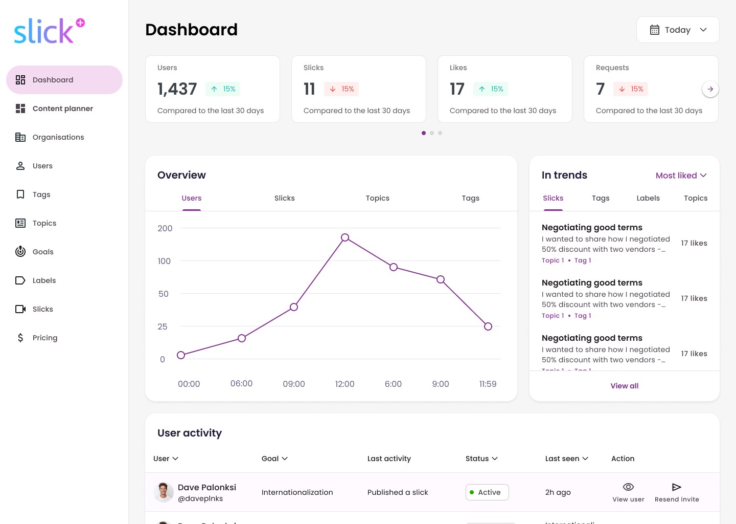 At that stage, Slick+ only offered the experience for end-users — employees consuming and sharing content within the feed.