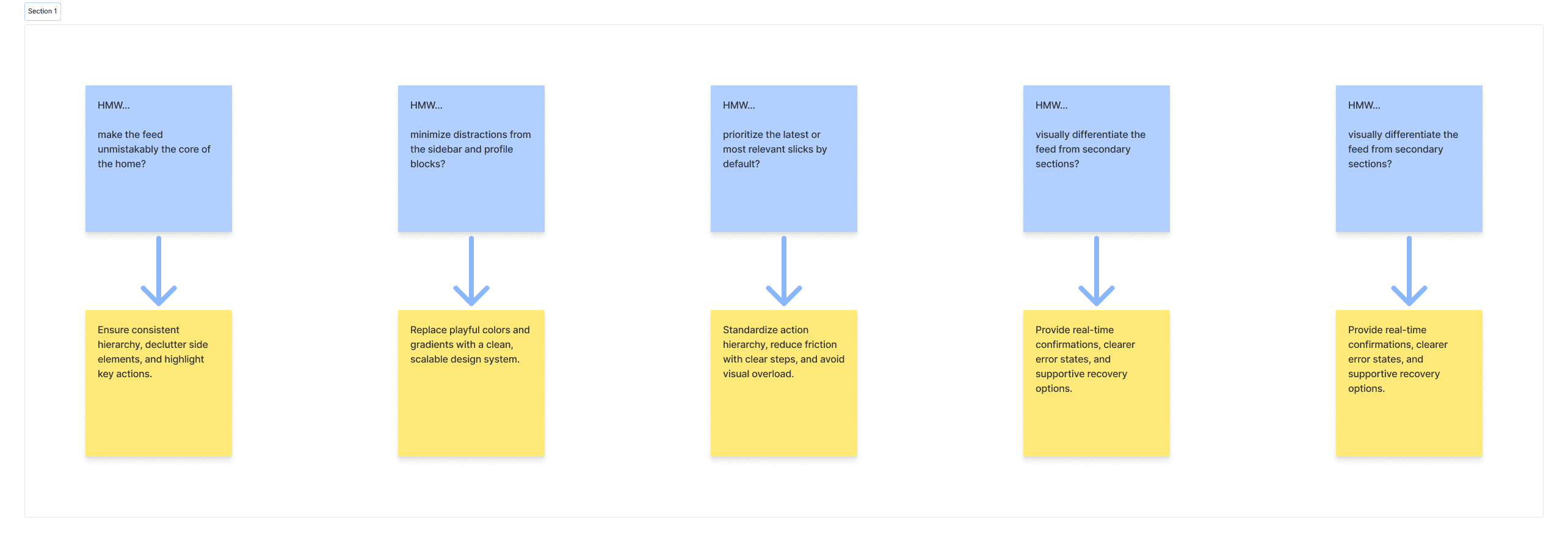 Through JTBD and HMW synthesis, three strategic requirements emerged: